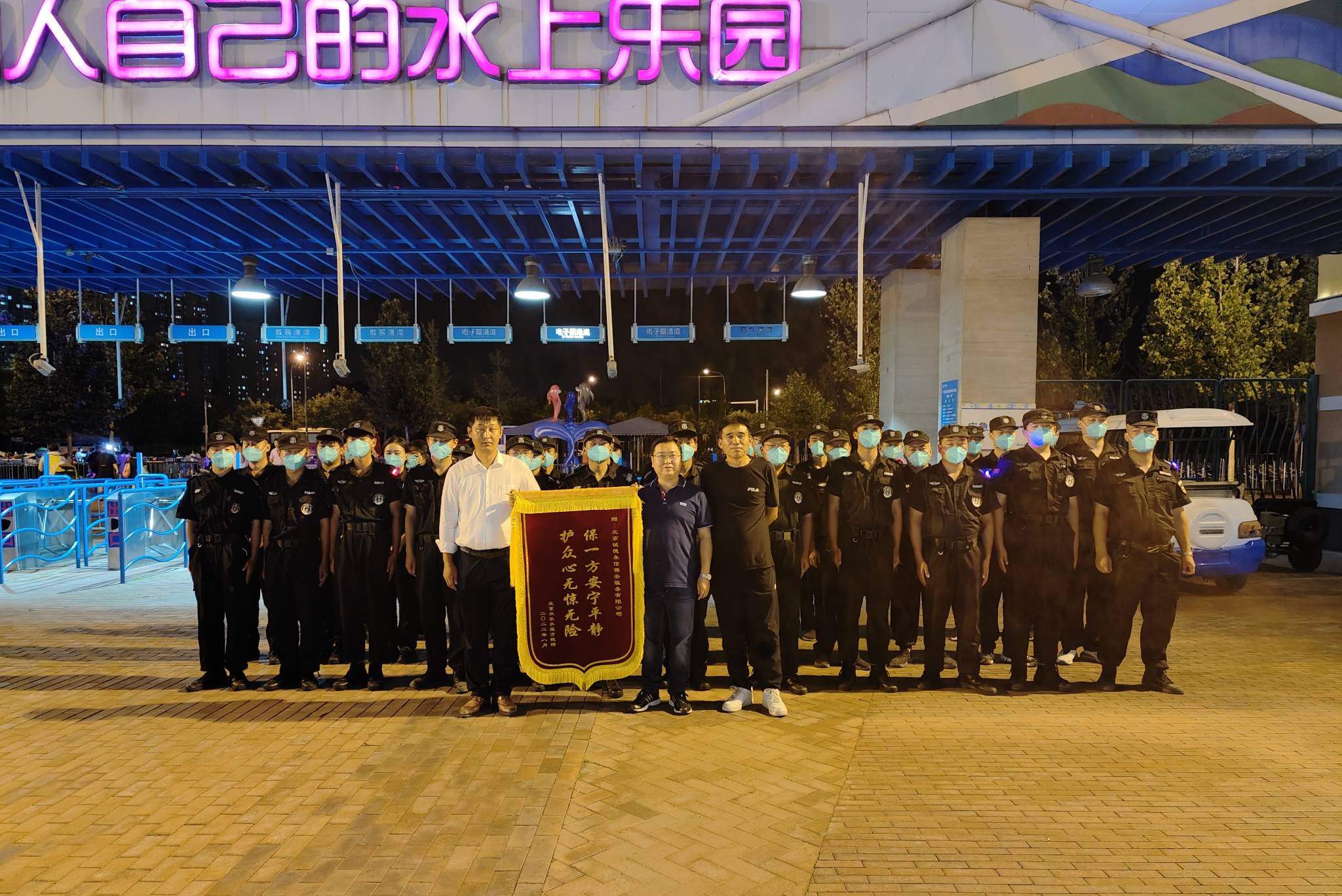 水魔方项目是我公司明星项目,项目经理秉承“一切为甲方着想,为甲方一切着想”的理念。保安员们秉承恪尽职守,尽职尽责的原则,在疫情防控期间,顶高温冒酷暑,始终坚守工作岗位,以崇高的敬业精神守护着一方平安